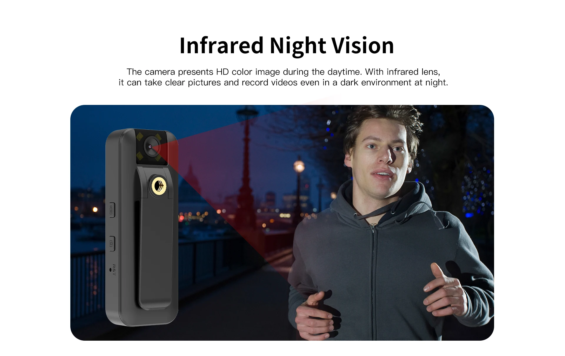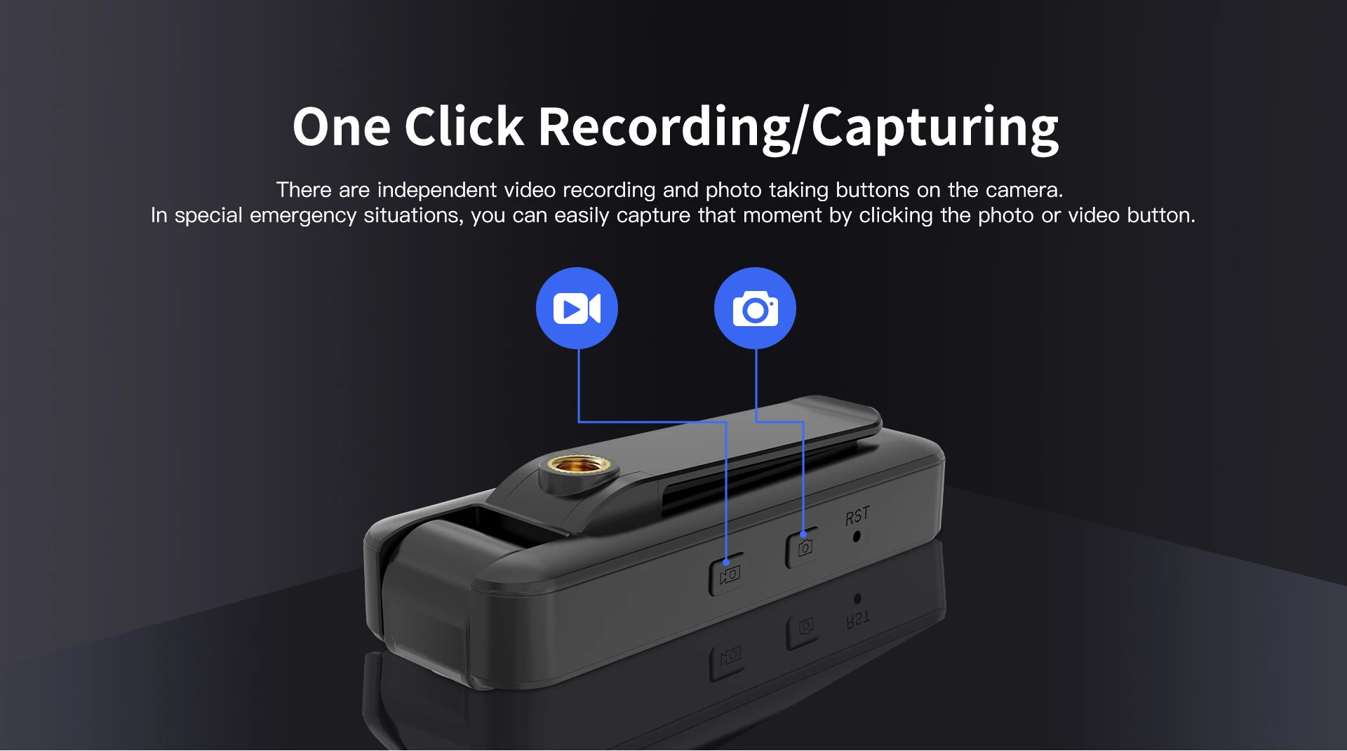 Short press the photo button once to take a photo; short press twice to turn on/off night vision mode
