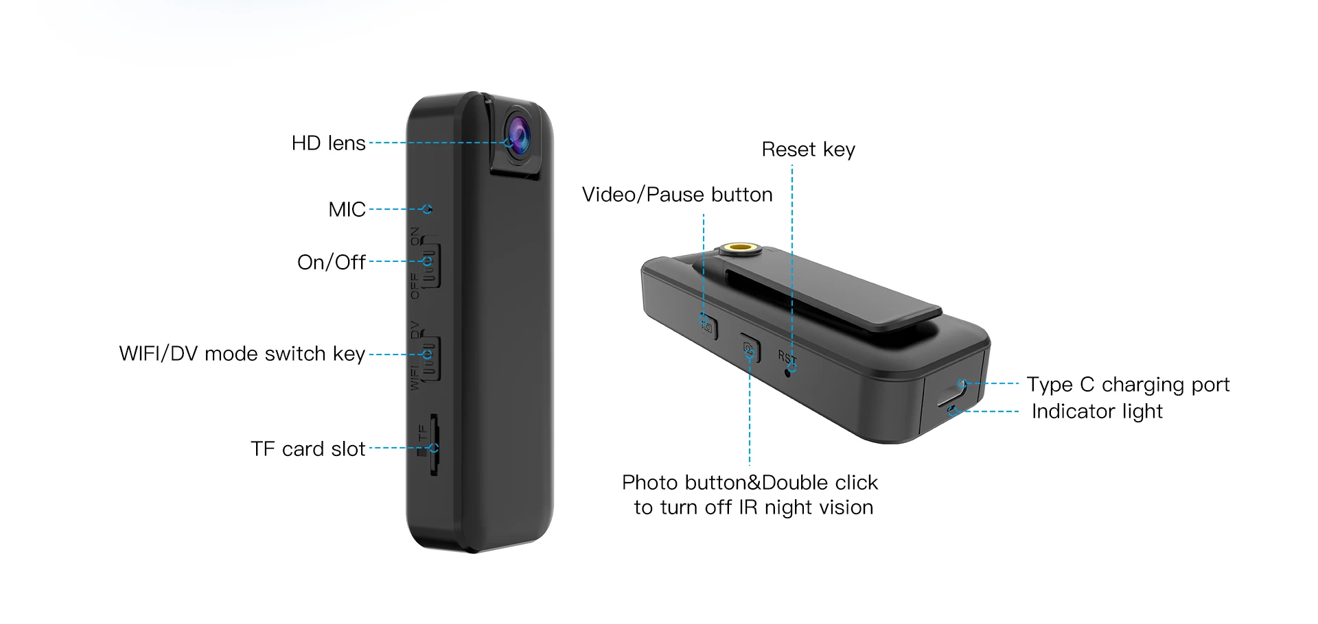 1080P Body WIFI Camera Police Recorder Bodycam Chest Camera CCTV Security Surveillance Camcorder Remotely Watching Via APP