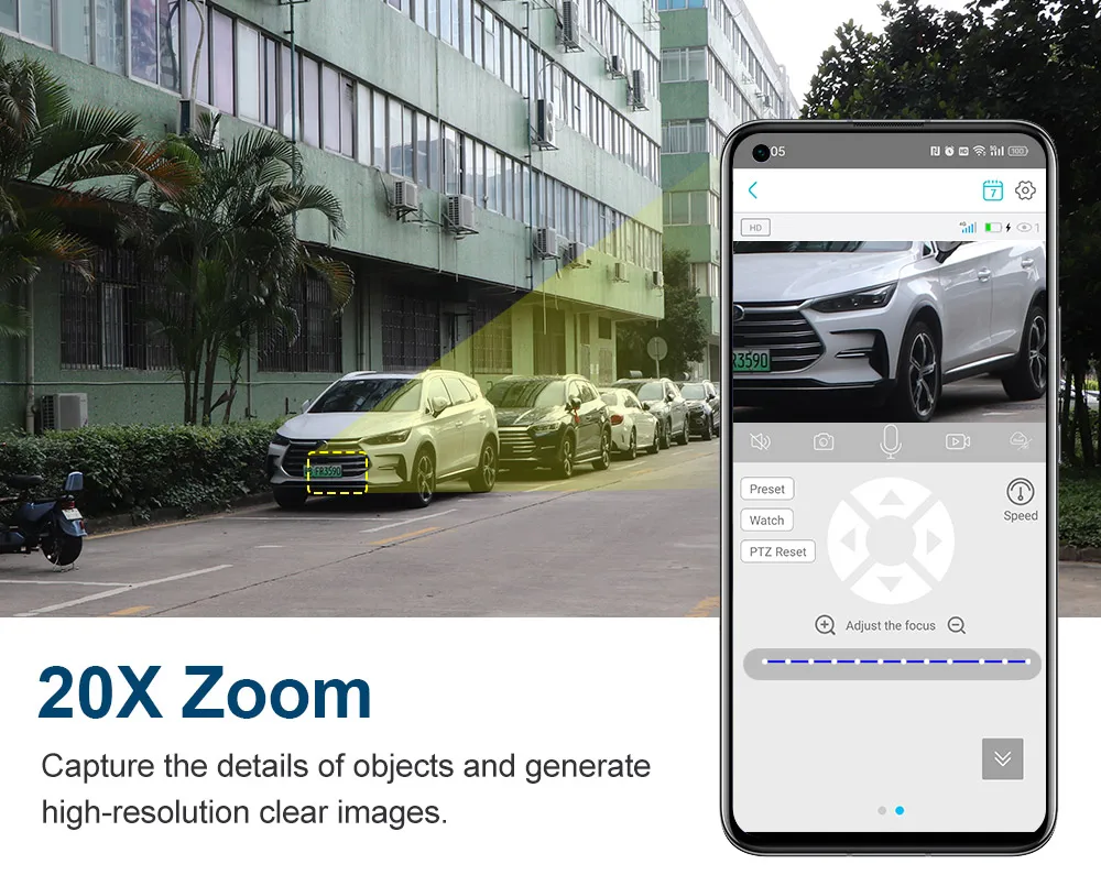 11.2.8mm wide-angle lens + 5-50mm 20x zoom PTZ lens,Seeing clearly