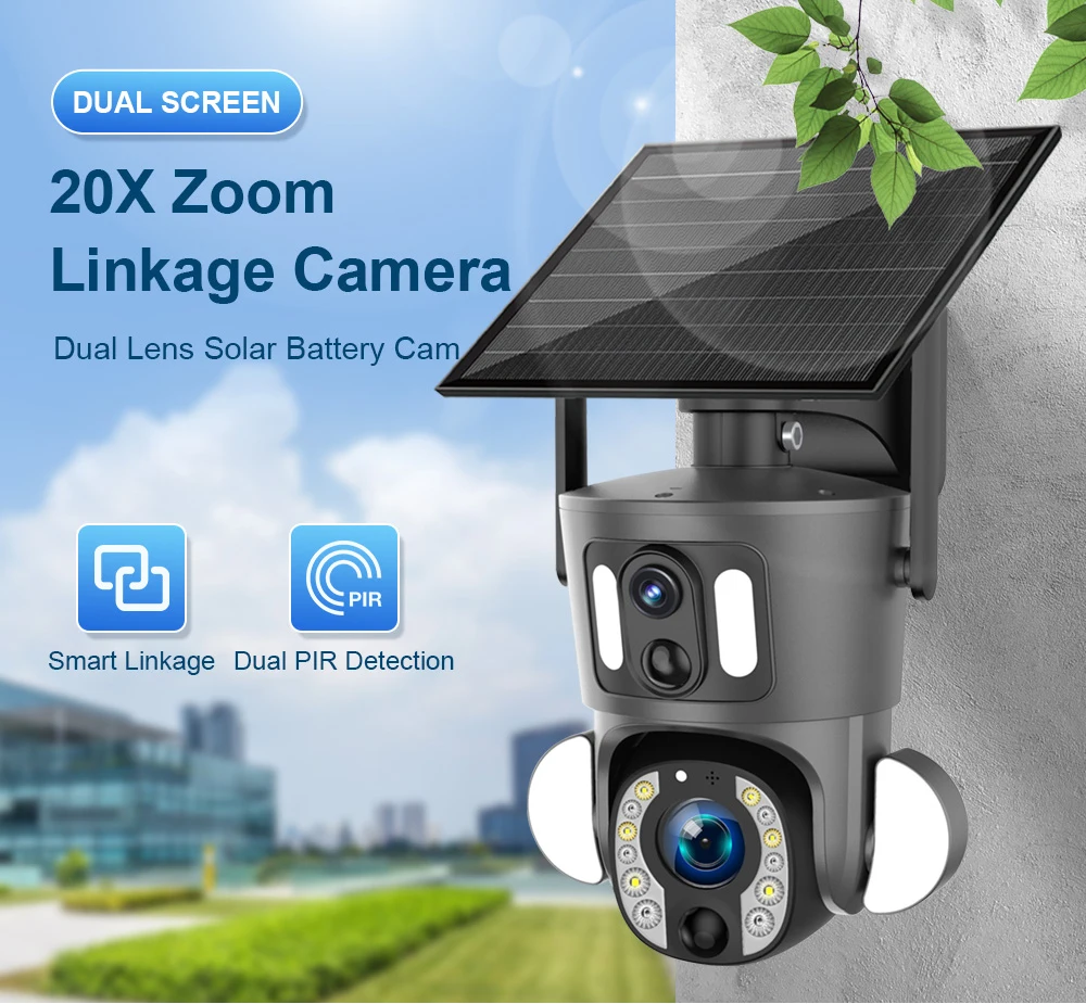 1. 8MP dual-lens dual-screen 4G solar powered battery floodlight PTZ
