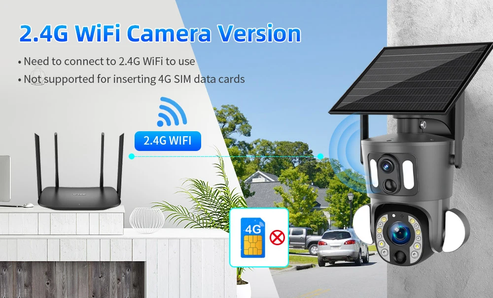 2. Wi-Fi Camera: Supports 2.4GHz Wi-Fi networks only (no SIM card support).
