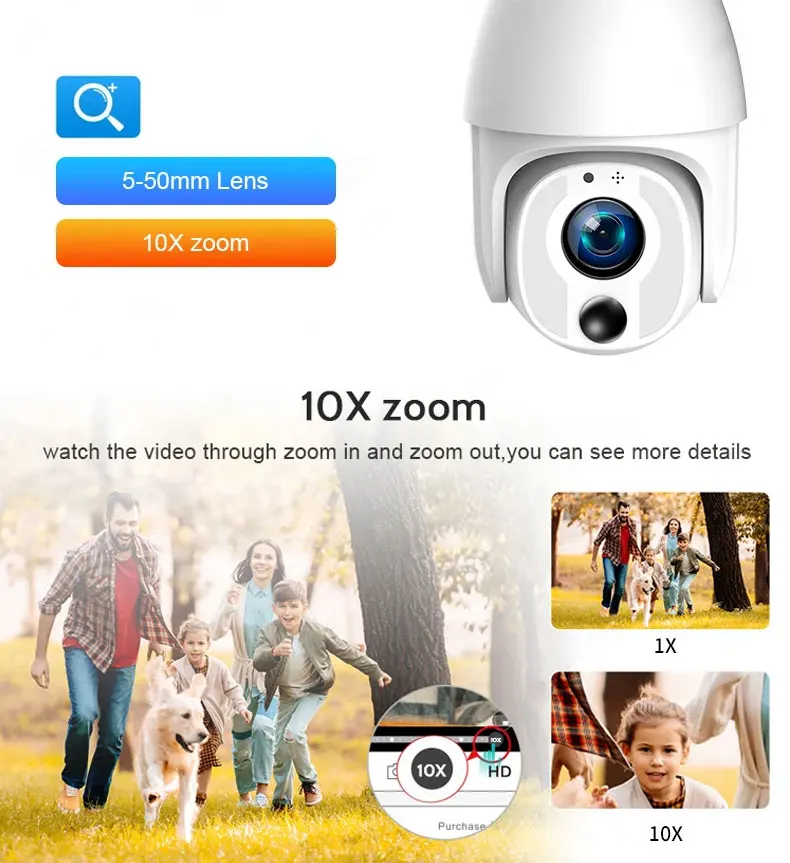 SNOSECURE Full Metal 5MP Auto Human Tracking 5-50mm 10X Optical Zoom 8W Solar Power 4G IP PTZ Camera UBOX APP Mobile Control Smart Camera