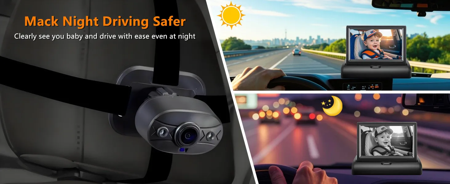Easy Installation: Fasten the baby car camera to the car seat headrest with the strap, then connect the video cable to the baby car monitor, and power it up using the cigarette lighter socket. Every new mom can easily set it up quickly.