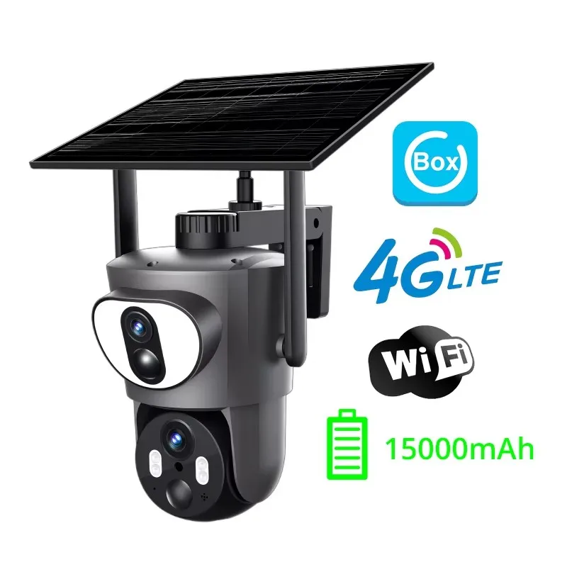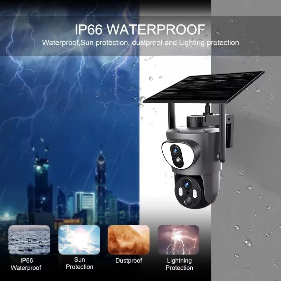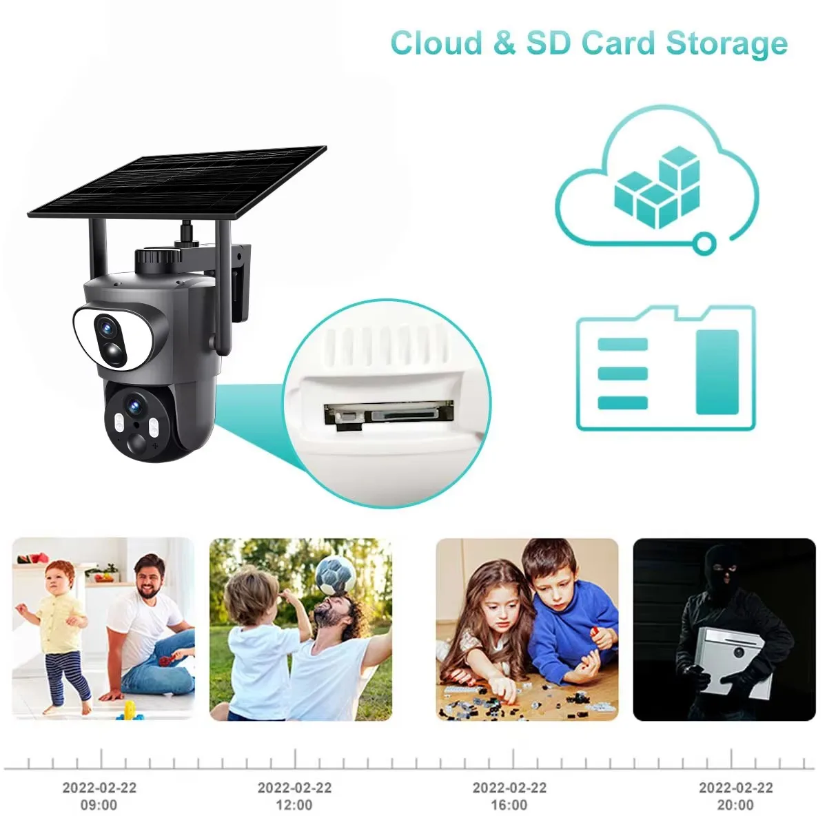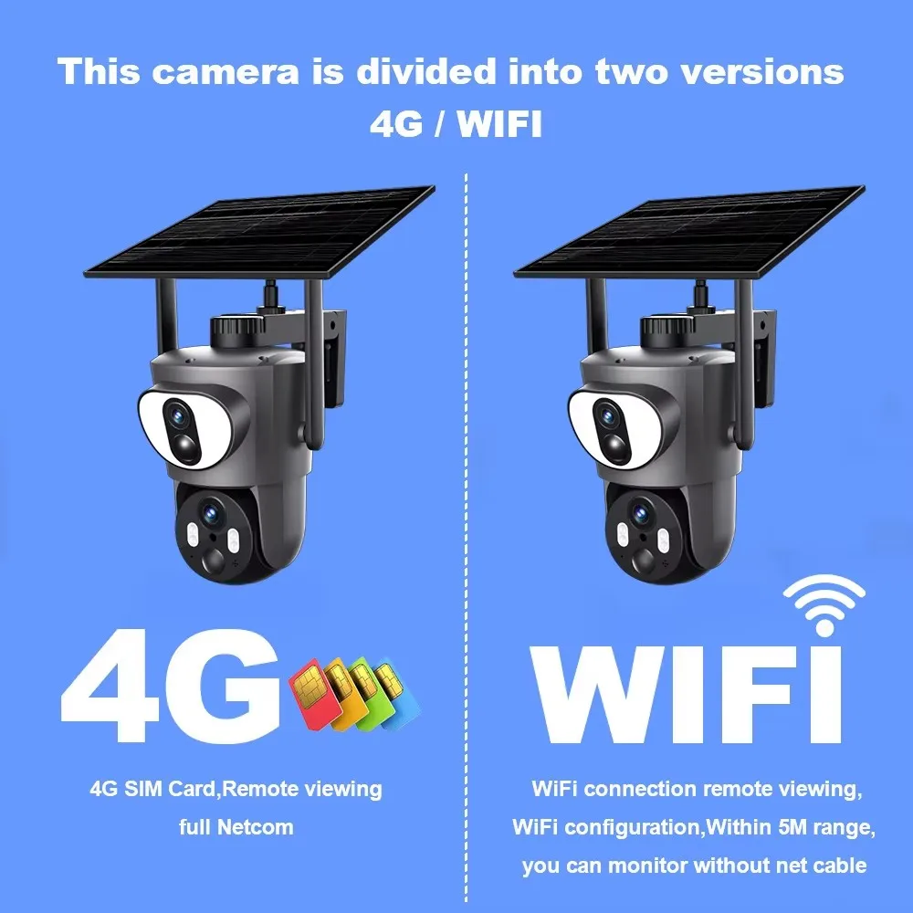 4MP Battery Camera Dual Lens 2K 6W Pir Ptz Solar Power Cctv Camera System IP Outdoor Wireless 4G Security Camera Solar