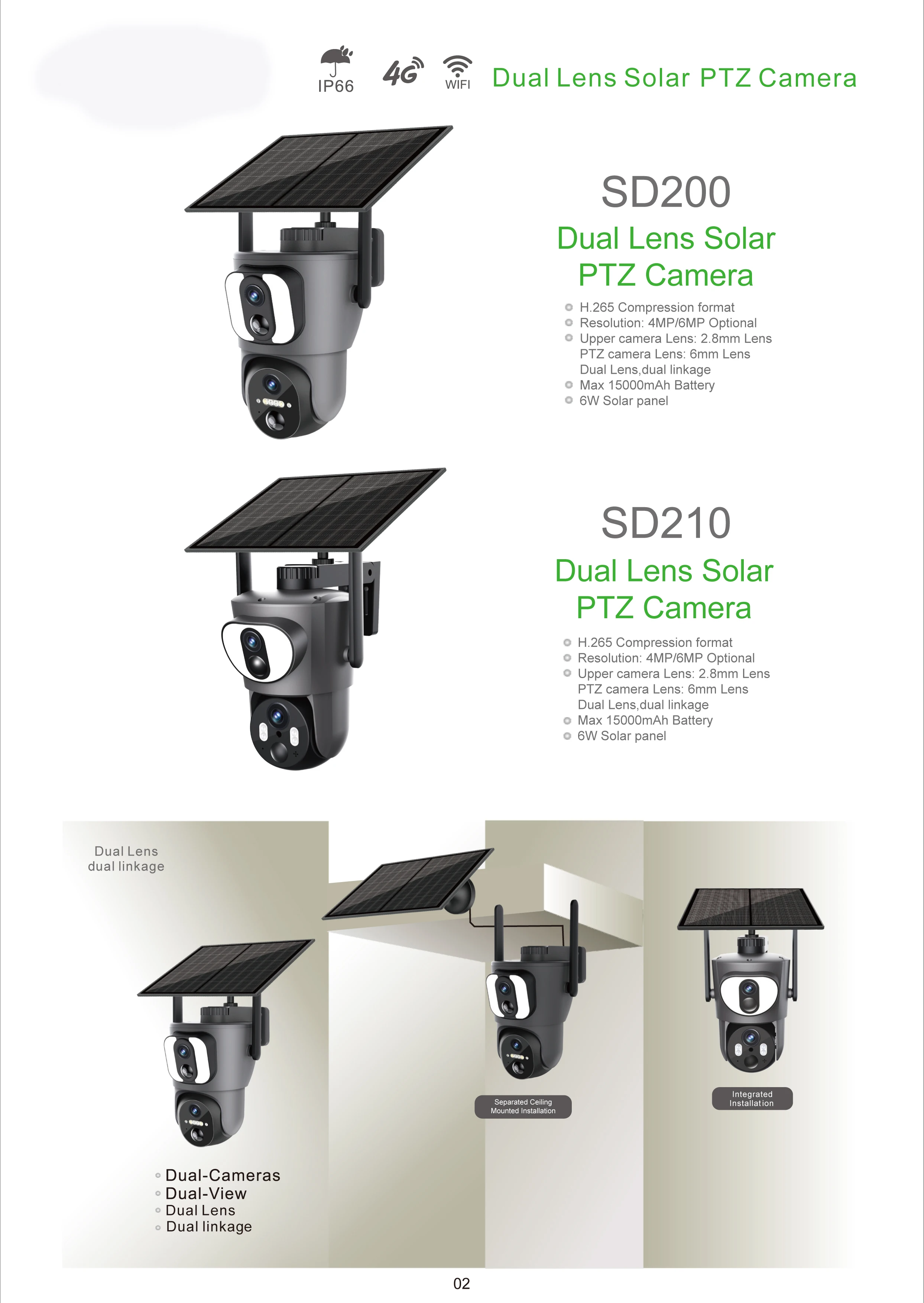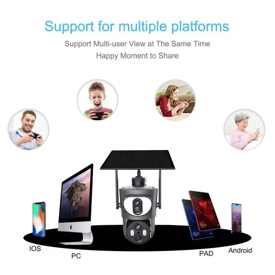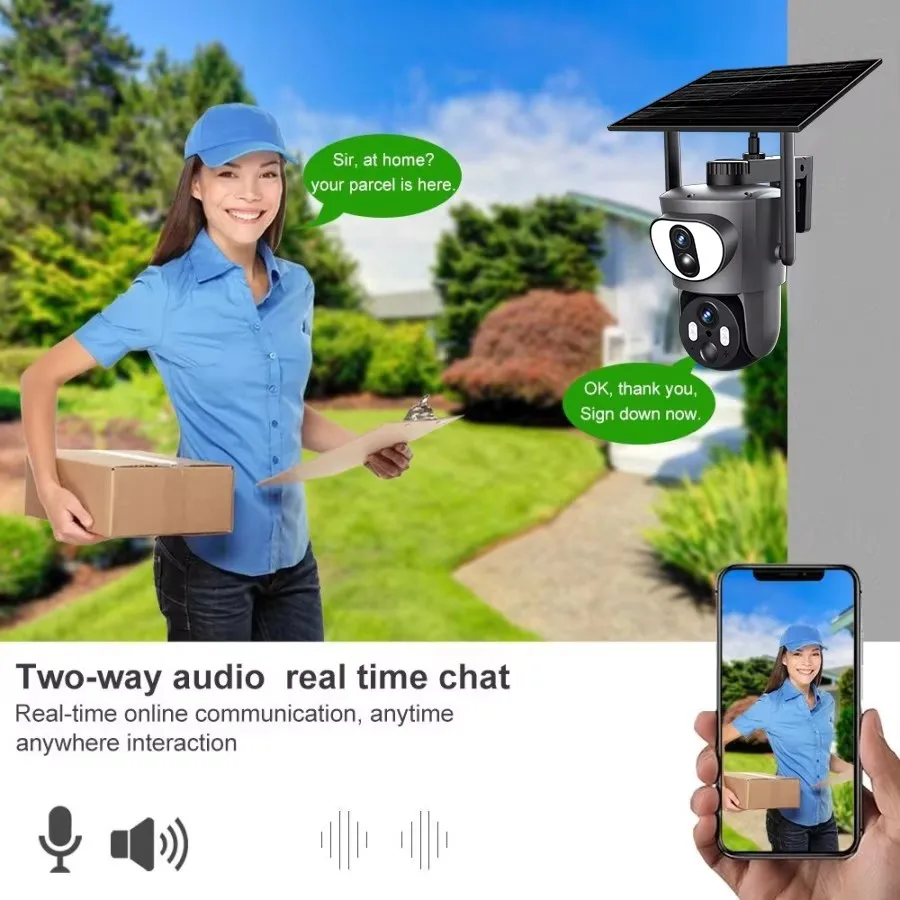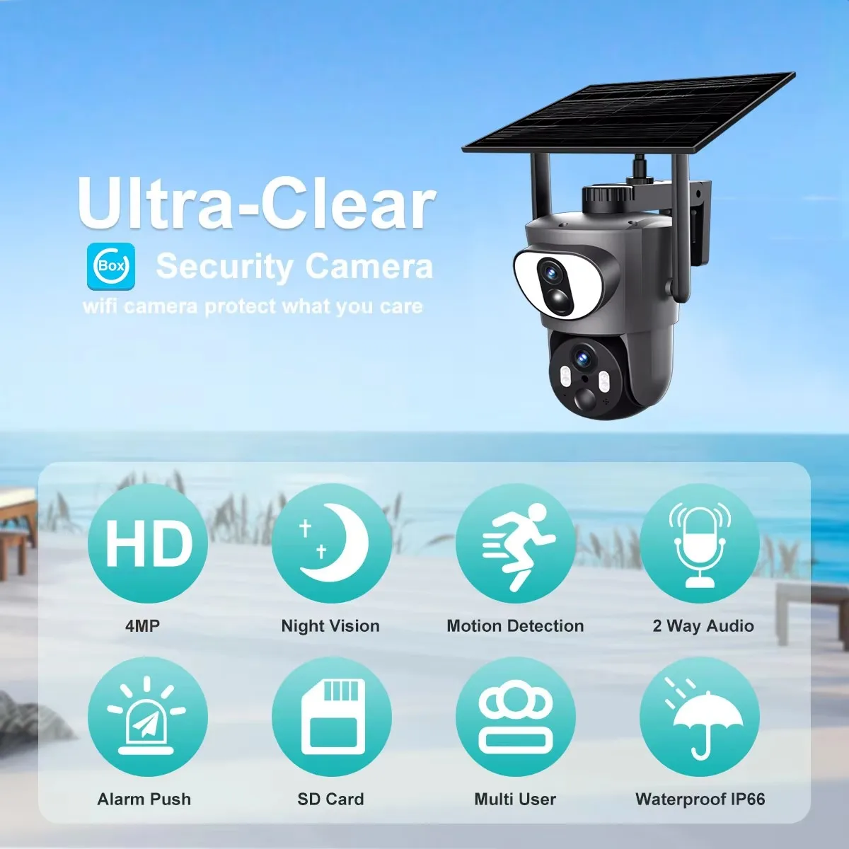 4MP Battery Camera Dual Lens 2K 6W Pir Ptz Solar Power Cctv Camera System IP Outdoor Wireless 4G Security Camera Solar