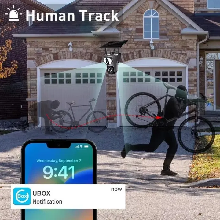 SNOSECURE 6MP Battery Powered Dual Lens 3K 6W CCTV Solar Security Camera System IP Outdoor Wireless 4G CMOS Sensor Pir Ptz Features