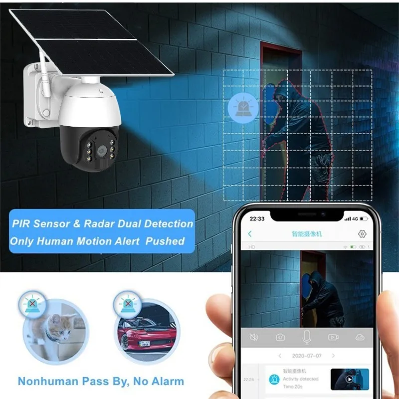 Battery & Solar Dual Powered, Radar & PIR Dual Alarm.