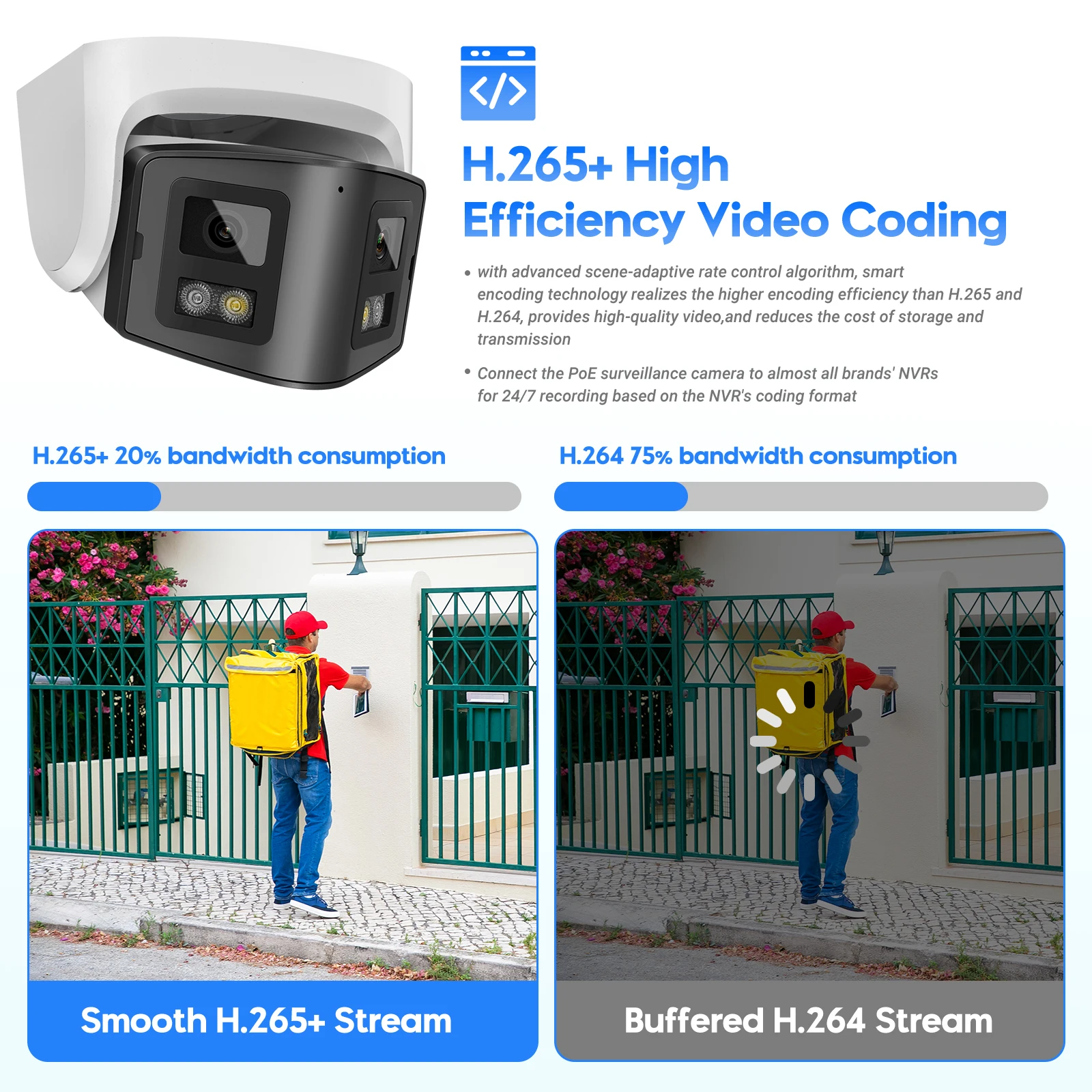 allowing you to store more video on your SD card or NVR hard disk.