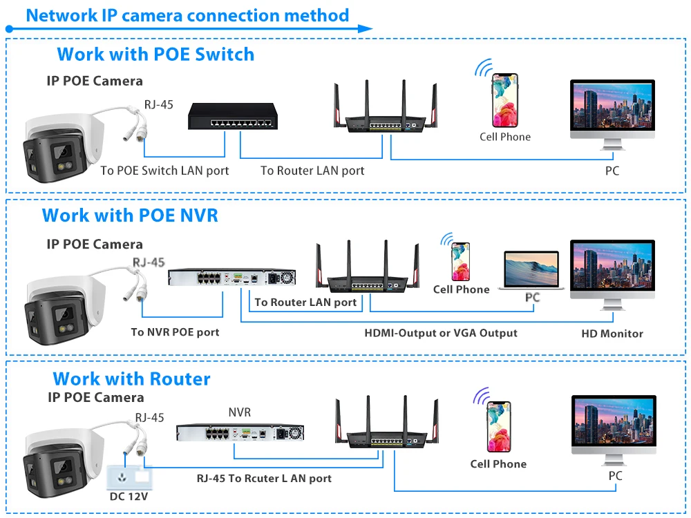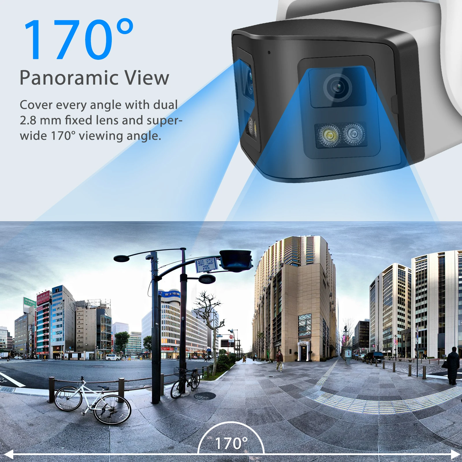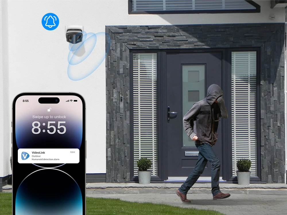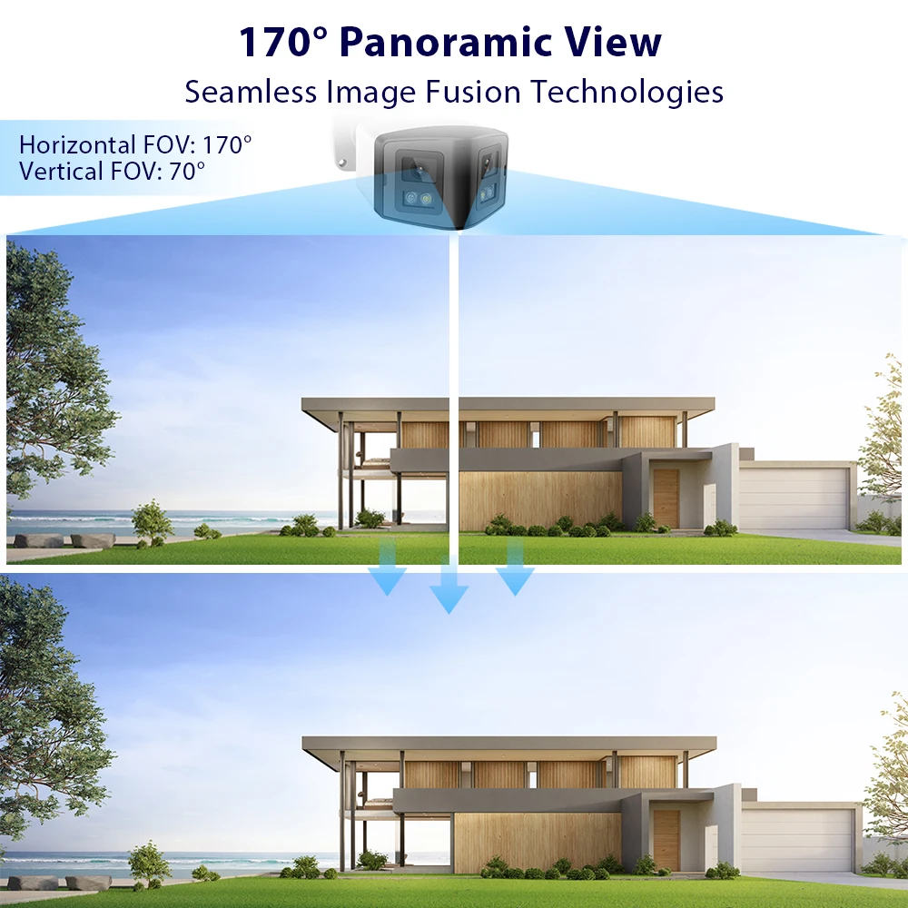 Thanks to the dual lenses, this POE IP camera can get a 170 wide viewing, you can see more scene around your house. Also the camera is with 4096*1944 ,8MP high HD resolution, you can see more clearer details.