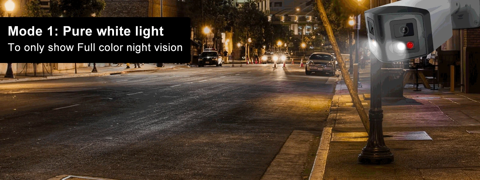>Pure white light mode to show full color night vision
