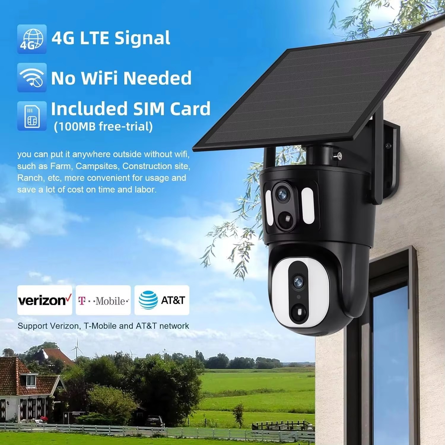 SNOSECURE Original Manufacturer Color Night Vision Two Way Audio Motion Detection 4MP WIFI 4G Sim Card PTZ Dual Lens Solar Camera