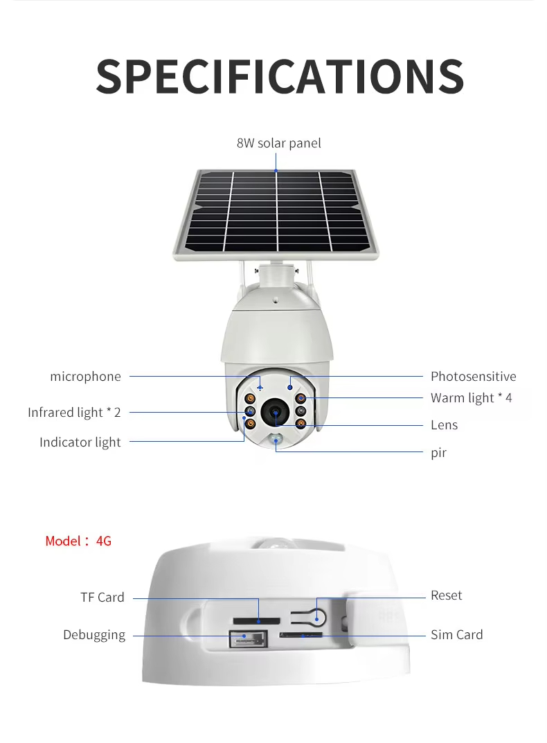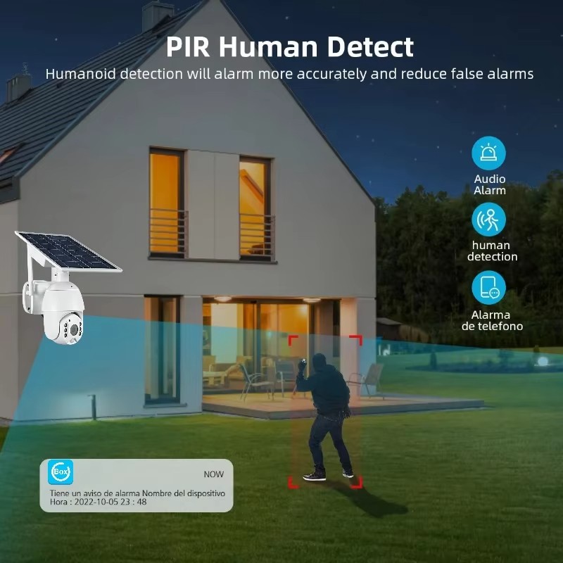 SNOSECURE Solar CCTV Camera Wireless Outdoor Security WiFi Battery Powered PIR Camera Solar Panel Cloud Storage 1080p Two-Way Audio