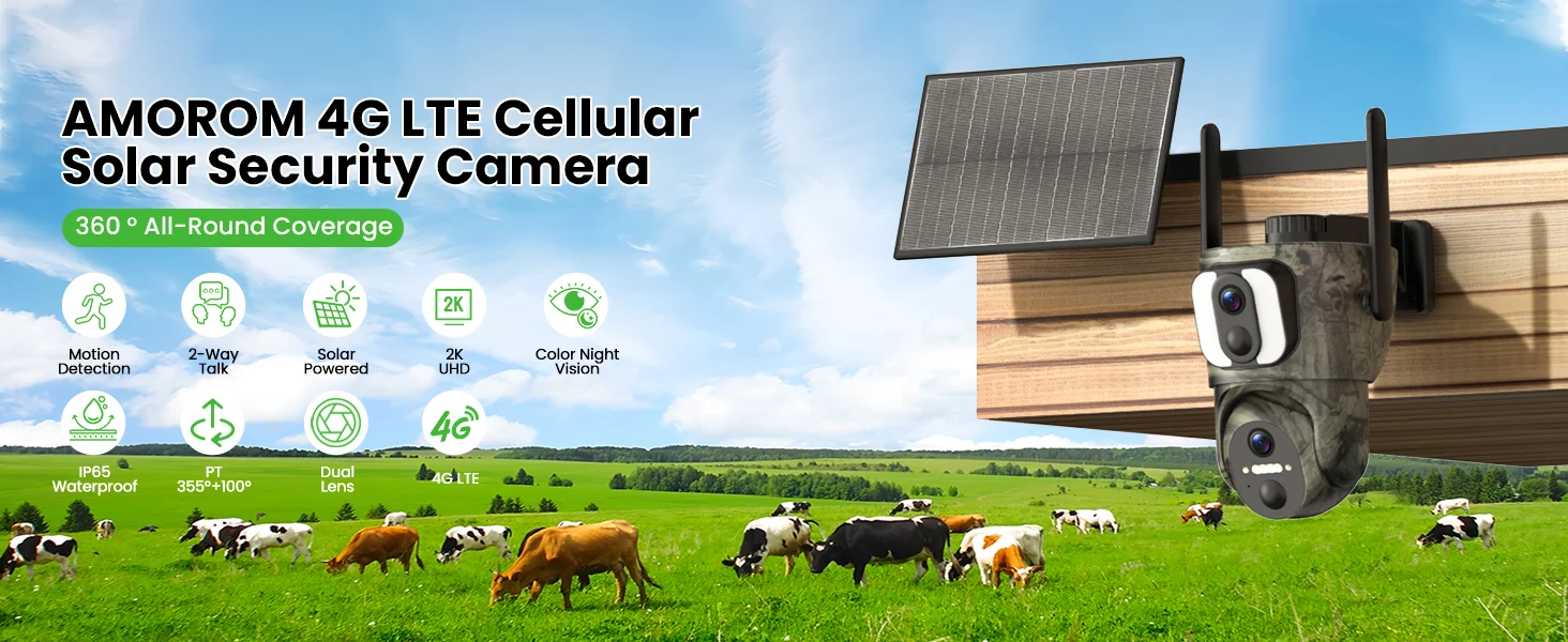 Uninterrupted monitoring anywhere: whether in a remote place, on a construction site, a farm or a holiday home, the AMOROM 4G LTE surveillance camera ensures 24/7 surveillance without the need for WiFi or sockets.